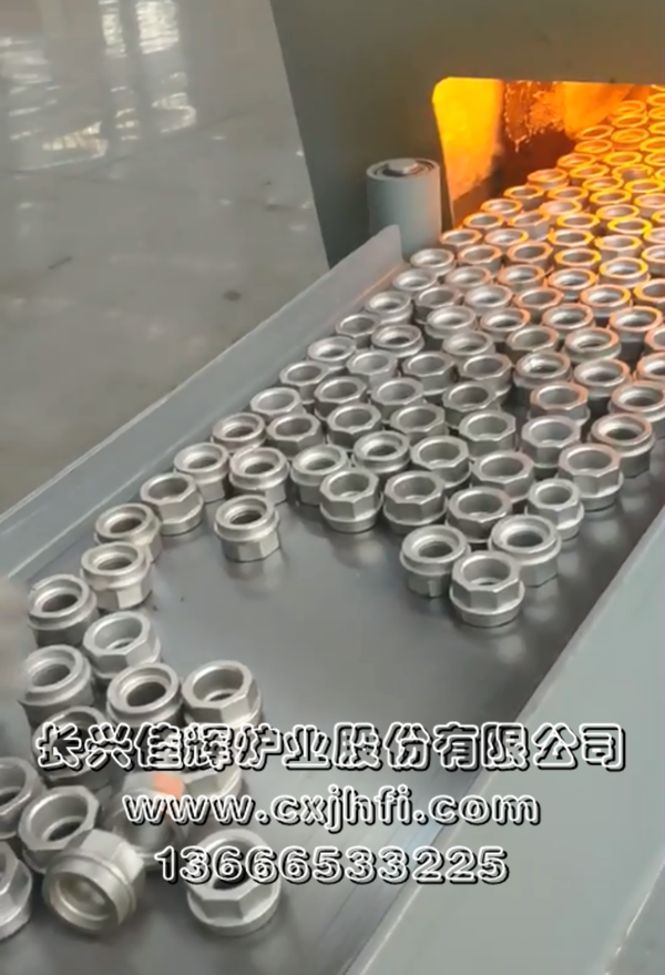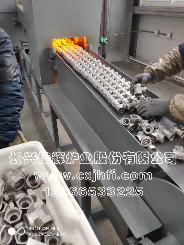 不銹鋼球閥體(閥殼)光亮退火爐 此設(shè)備可根據(jù)用戶要求進(jìn)行定制、定做,服務(wù)熱線:13666533225 RST型不銹鋼球閥體(閥殼)光亮退火爐,適用于不銹鋼球閥體(閥殼)及其他不銹鋼管件、拉伸件、零部件等在可控氣氛(氫氮混合氣體)保護(hù)下,進(jìn)行光亮固溶、去應(yīng)力退火、消磁等熱處理工藝的專用設(shè)備。 金屬及奧氏體產(chǎn)品在彎曲、拉伸、鍛壓、切削、鑄造、焊接等加工 不銹鋼產(chǎn)品退火溫度:950~1080℃,在此溫度下為防止產(chǎn)品與空氣接觸產(chǎn)生氧化(變黑),我公司采用氫氮混合氣體進(jìn)行保護(hù),保證產(chǎn)品進(jìn)爐前和出爐后的顏色及光澤度一致。 產(chǎn)品退火處理后,表面光亮無(wú)氧化,內(nèi)應(yīng)力消除,便于后期的繼續(xù)拉伸或成品出貨。本設(shè)備取代傳統(tǒng)的退火處理(傳統(tǒng)的高頻退火處理后,產(chǎn)品表面氧化成黑色,需進(jìn)行后序的酸洗處理,污染環(huán)境),本生產(chǎn)線大大提高了生產(chǎn)效率,降低勞動(dòng)強(qiáng)度及成本,改善工人的勞動(dòng)環(huán)境,達(dá)到高效、節(jié)能、環(huán)保的要求。 該生產(chǎn)線具有控制先進(jìn)、節(jié)能顯著、維修方便等特點(diǎn),工件輸送采用耐高溫金屬鋼帶或網(wǎng)帶變頻調(diào)速,全線加熱區(qū)均采用PID自動(dòng)多區(qū)控溫。